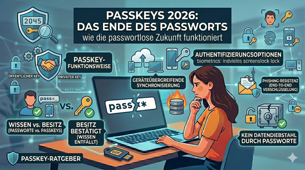 Passkeys ersetzen Passwörter durch kryptografische Schlüssel – sicherer, einfacher und phishing-resistent. Wir erklären, wie Passkeys funktionieren und wo du sie heute schon nutzen kannst.